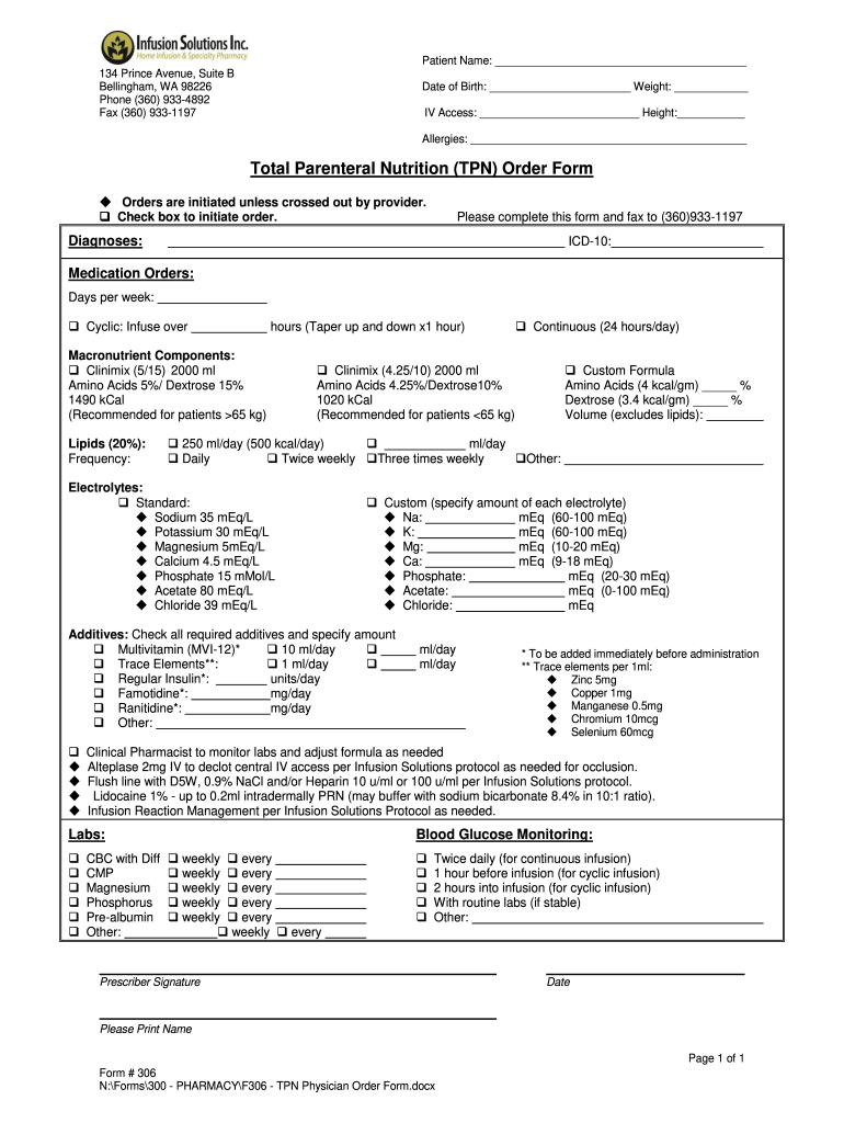 TPN 처방은 매일마다 새로 내야 한다. 필요한 경우 전해질이나 비타민, 미량 원소를 추가한다.