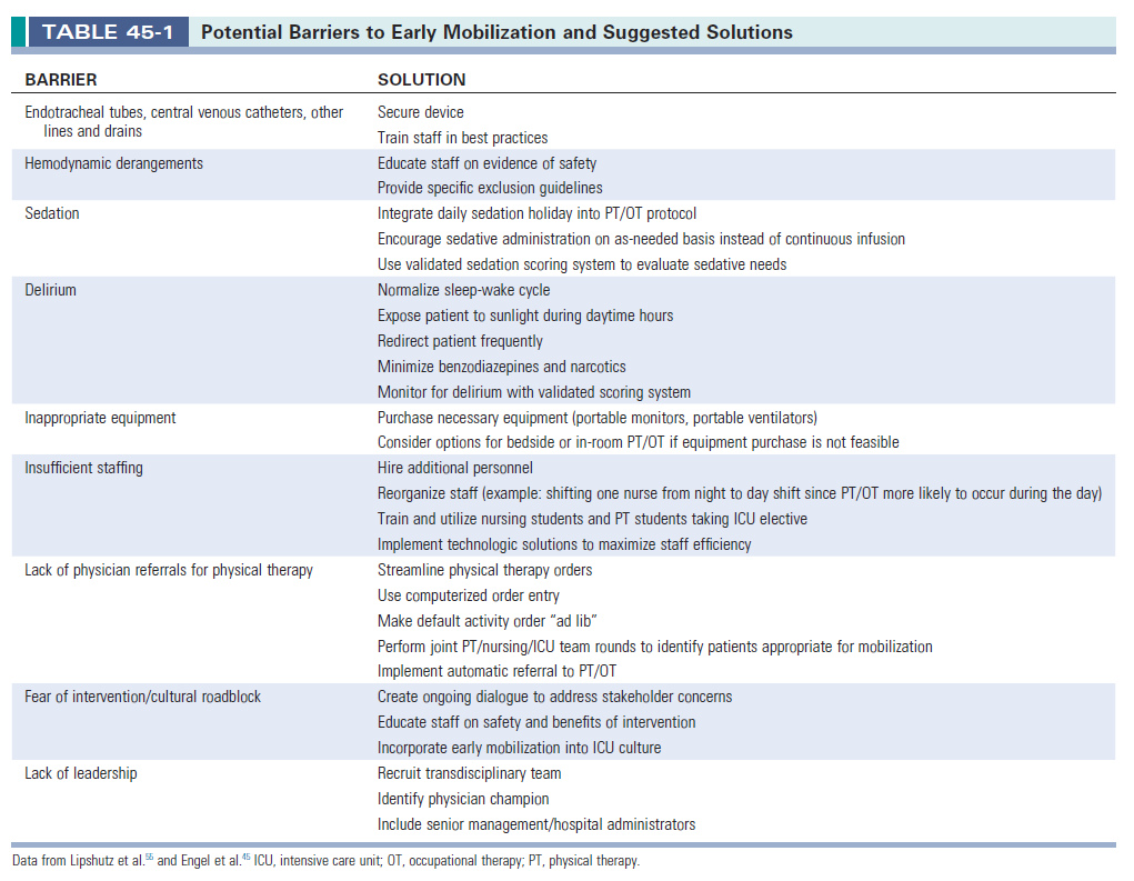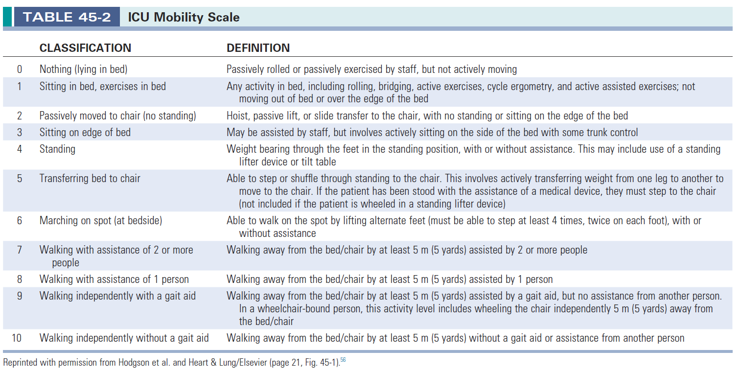 Chapter 45. Early Ambulation in the ICU. Textbook of critical care, 7th ed. Elsevier
