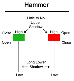 주로 하락 추세의 마지막 추세에서 나타난다. 이후 강세 전환 가능성이 매우 높은 패턴이다. 시가가 당일의 저가이며 짧은 위 그림자를 보인다. 몸통의 길이가 길수록 신뢰도는 증가한다.