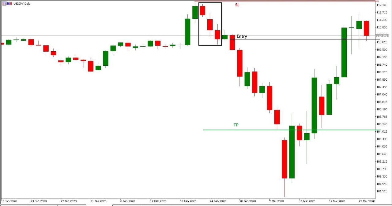 첫 양봉의 고점보다 높은 곳에서 시작하여 종가가 젓 번째 봉의 몸통 절반 이하에 하향 위치하면 좀 더 신뢰성이 높다고 할 수 있다. 만일 두 번째 봉의 하향 위치 정도가 심하여 첫 번째 양봉을 감싸면 하락 장악형이 된다. 명확한 상승 추세 후 발생했거나, 두 번째 음봉이 저항 수준에 걸쳐 있는 경우, 그리고 두 번째 봉이 거래를 많이 수반했다면 하락 반전에 대한 가능성은 더욱 높다.