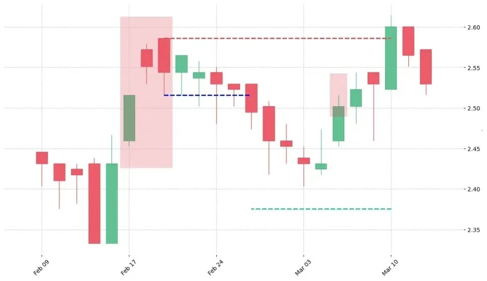 상승 추세에 있던 두 개 또는 그 이상의 캔들이 더 이상 고점을 갱신하지 못하면서 고가가 이전 캔들의 고가와 일치시키는 형태를 보이는 패턴이다. 다른 패턴과 중복되어 출현할 가능성이 높으며 일반적으로 고점이 저항선의 역할을 한다. 동일한 고점을 형성하는 캔들의 수가 많을수록 이후에 하락 반전될 경우 하락 추세가 더욱 강화되는 특성이 있다.