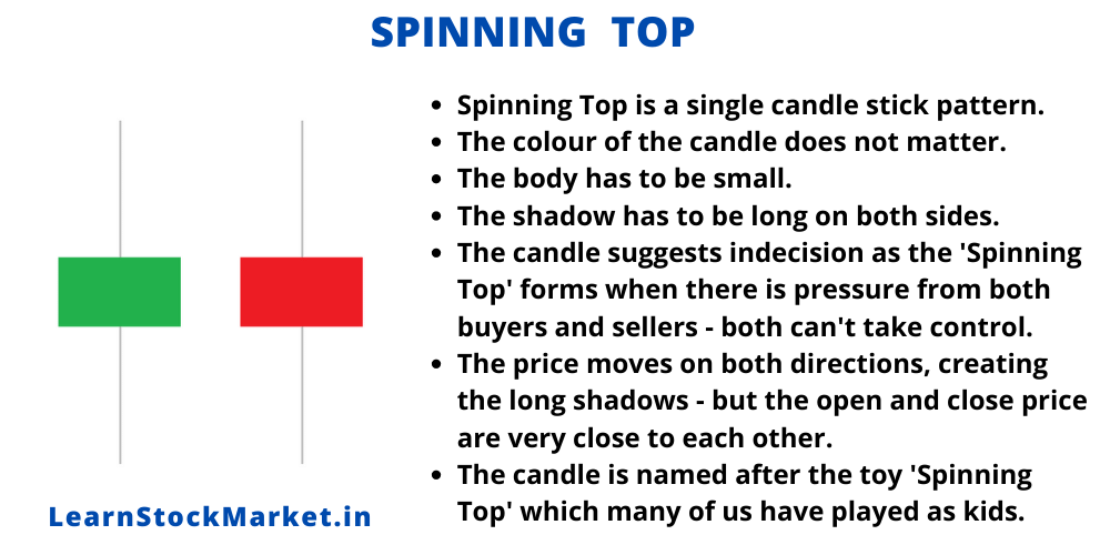 몸통의 길이에 비해 그림자의 길이가 상당히 긴 형태의 캔들이다. 강세와 약세의 형세가 애매한 국면에서 매수세와 매도세가 팽팽한 눈치를 보일 때 나타난다. 주로 추세 전환 국면이나 지지나 저항이 크게 작용하는 국면에서 나타난다. High-wave candle이라고도 불린다.