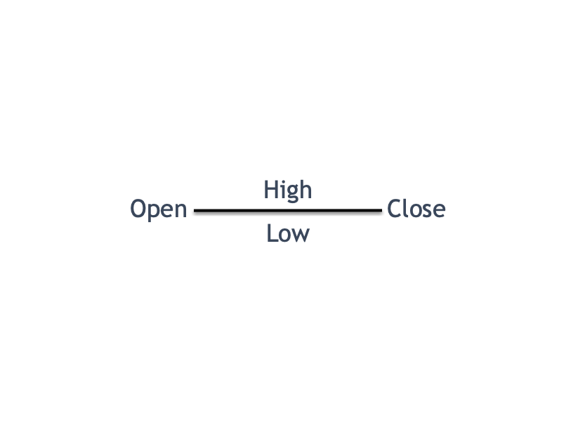 시가, 고가, 저가, 종가가 같거나 거의 비슷한 수준에서 형성된다. 거래량이 부진하고 발생 확률도 크지 않다. 주로 신규 상장이나 등록과 같은 상황 혹은 갑작스러운 시장 변동이 발생할 경우 나타난다. 이 패턴은 독립적으로 해석하기보다는 다음날 발생하는 캔들과 동시에 해석해야 한다.
