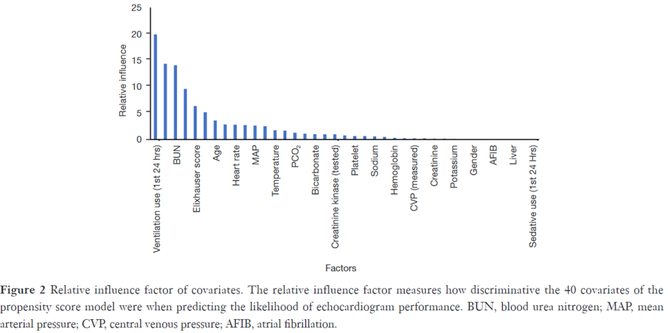 본 연구에서 PS에 더 많이 영향을 준 covariates로는 the use of ventilators, partial pressure of oxygen (PO2), blood urea nitrogen, troponin, Elixhauser score가 있었습니다. 이 결과로 IPW를 시행해서 양 group 간의 차이를 standardization 하였습니다.