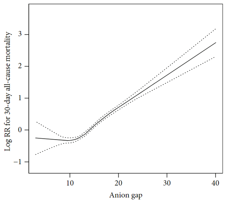 Anion gap은 unmeasured anion concentration을 반영하며 기존의 clinical chemical analysis에서 쉽게 계산할 수 있다. 이는 acid-base status를 평가하는 데 널리 사용되며, 다양한 질병의 진단 및 예후에 중요한 단서를 제공하는 가장 일반적으로 사용되는 biomarker 중 하나이다. 상승된 serum AG는 일반적으로 organic acid onion의 overproduction 또는 anion excretion 감소로 발생한다. 증가된 serum lactate이나 ketoanions이 AG 증가의 주요 원인이다. 중환자는 종종 hypoxia나 anaerobic tissue condition에 노출되어 pyruvate이 빠르게 축적되며 이는 거의 완전히 lactate으로 전환된다.