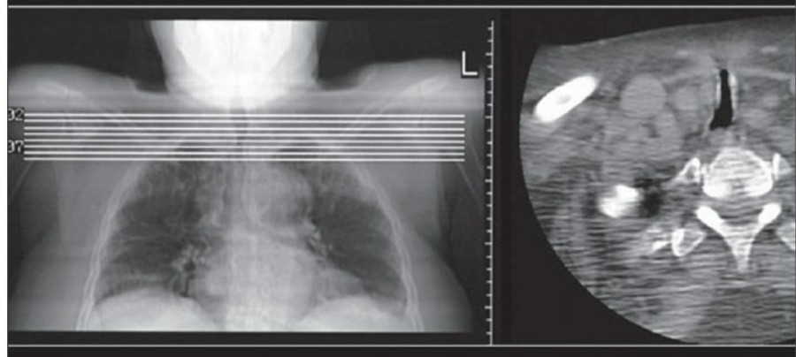 Pneumothorax, pneumomediastinum, subcutaneous emphysema in the neck or precipitous respiratory failure following intubation 등에서는 trachea rupture와 같은 중한 손상을 의심해 볼 수 있는데, trachea rupture는 주로 posterior 쪽에 위치한다.