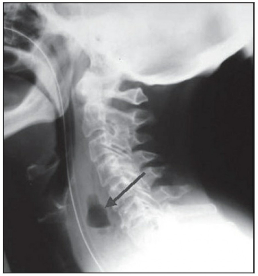 Upper airway 손상이 의심될 때, lateral radiograph 촬영이 유용하다. Trachea와 cervical spine 사이 soft tissue space의 지름이 vertebral body 1개의 넓이보다 증가한다면 혈종이나 감염이 원인일 수 있다.