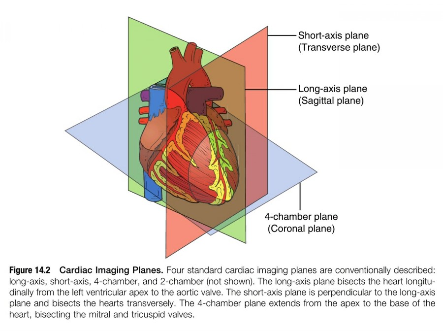 long-axis, short-axis, 4-chamber, 2-chamber.