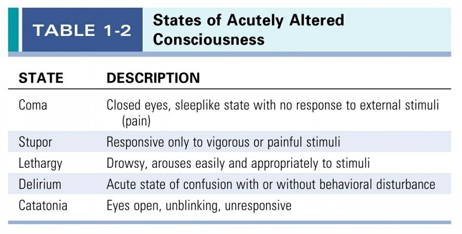 CNS function의 global change는 의식 변화(impairment in consciousness)라고 표현할 수 있으며, encephalopathy 혹은 altered mental status을 설명하기 위한 용어다. 의식 수준의 급격한 변화는 분명히 ICU 입실 후 발생할 수 있는 가장 흔한 neurologic complication이며, consciousness는 깨어 있는 상태(arousal or wakefulness), 그리고 환경의 변화에 적절히 반응할 수 있는 능력으로 정의할 수 있다. 의식에 변화가 생긴다면 global hemispheric dysfunction이나 brainstem의 reticular activating system의 dysfunction이 반드시 존재한다. 의식변화의 결과로 sleeplike 상태(coma) 혹은 confusion과 agitation이 존재하는 상태(delrium)가 나타날 수 있다.