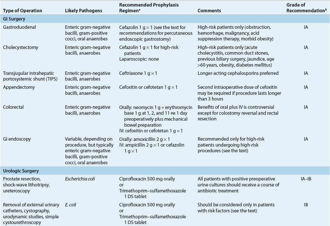 청결-염 부위 수술과 오염 부위 수술에서는 예방적 항균제의 사용의 필요하다. 청결 부위 수술의 경우에는, 혈관 내 인공 사입물 또는 인공 관절이 삽입되는 수술이나, 심장 수술, 혈관 수술, 대부분의 신경외과 수술 등은 감염이 발생하는 경우 심각한 상황이 야기되기 때문에 예방적 항균제의 사용이 추천된다. 대장 수술에 대한 최근의 한 연구는 비경구적 예방적 항균제 사용과 더불어서 경구용 항균제를 병합하여 사용하는 경우 수술 부위 감염이 줄어든다고 보고하였다. 경구용 항균제 병용의 추천이 언급된 지침서는 없지만, 미국 등지와 국내에서도 많은 경우에 실제로 시행되고 있다.