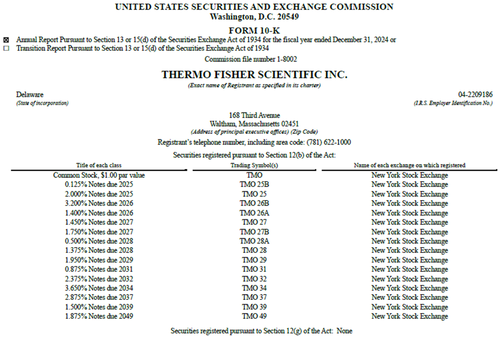 본 문서에 포함된 Thermo Fischer의 모든 상표, 상호, 제품명, 그래픽 및 로고는 해당되는 경우 미국 및/또는 기타 국가에서 Thermo Fisher 또는 그 자회사의 상표 또는 등록 상표이다. 편의상 Form 10-K 연례 보고서에서 ™ 및 ® 기호 없이 상표를 언급할 수 있지만, 이러한 언급이 법률이 허용하는 최대한의 범위 내에서 당사의 상표에 대한 권리를 주장하지 않겠다는 의사를 나타내는 것이 아니다. 본 Form 10-K 연례 보고서에 다른 상표가 나타나는 경우, 해당 상표는 각 소유자의 재산이다.