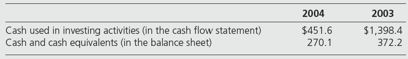 즉, 2004년 금융활동 현금흐름은 –846.3 million이며, 이는 주로 자사주 매입, 부채상환 같은 항목이 크게 발생했음을 의미한다.