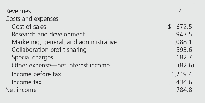 다음은 Genentech의 2004년 손익계산서에서 발췌한 항목이다(단위: 백만).