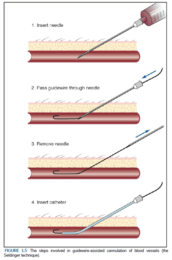 가장 표재적이고 촉지 가능한 정맥을 제외한 대부분의 정맥 삽관은, 정맥 내에 삽입된 가이드와이어 위로 카테터를 전진시키는 방식으로 이루어진다.