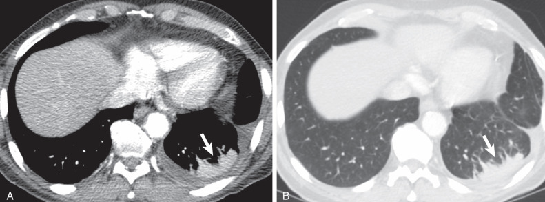 장기간 침상 상태, 기관삽관 환자, 수술 후 환자, 분비물 저류가 의심되는 환자, posterior lung에 국한된 음영이 보이는 경우 등이 이에 해당한다.