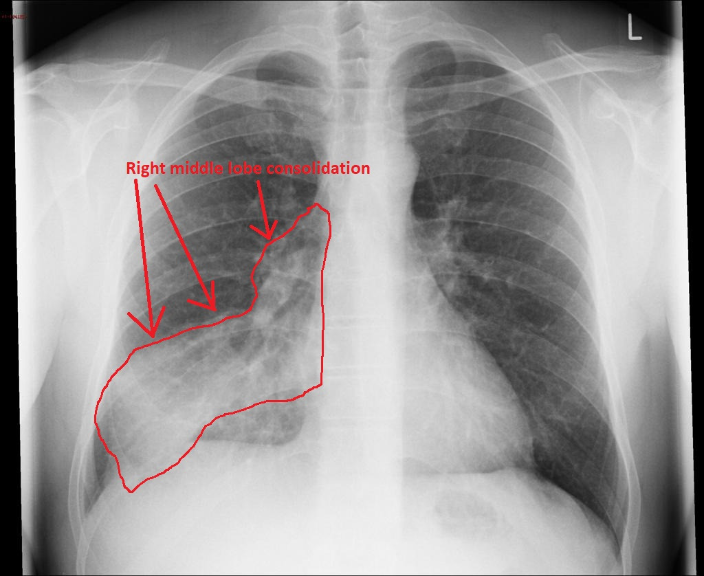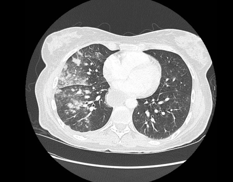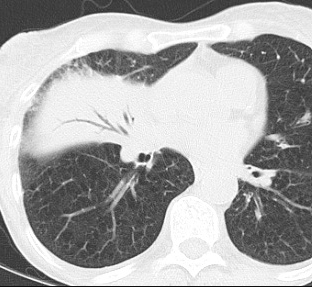 lobar consolidation 형태로 나타나는 경우가 많기 때문이다.